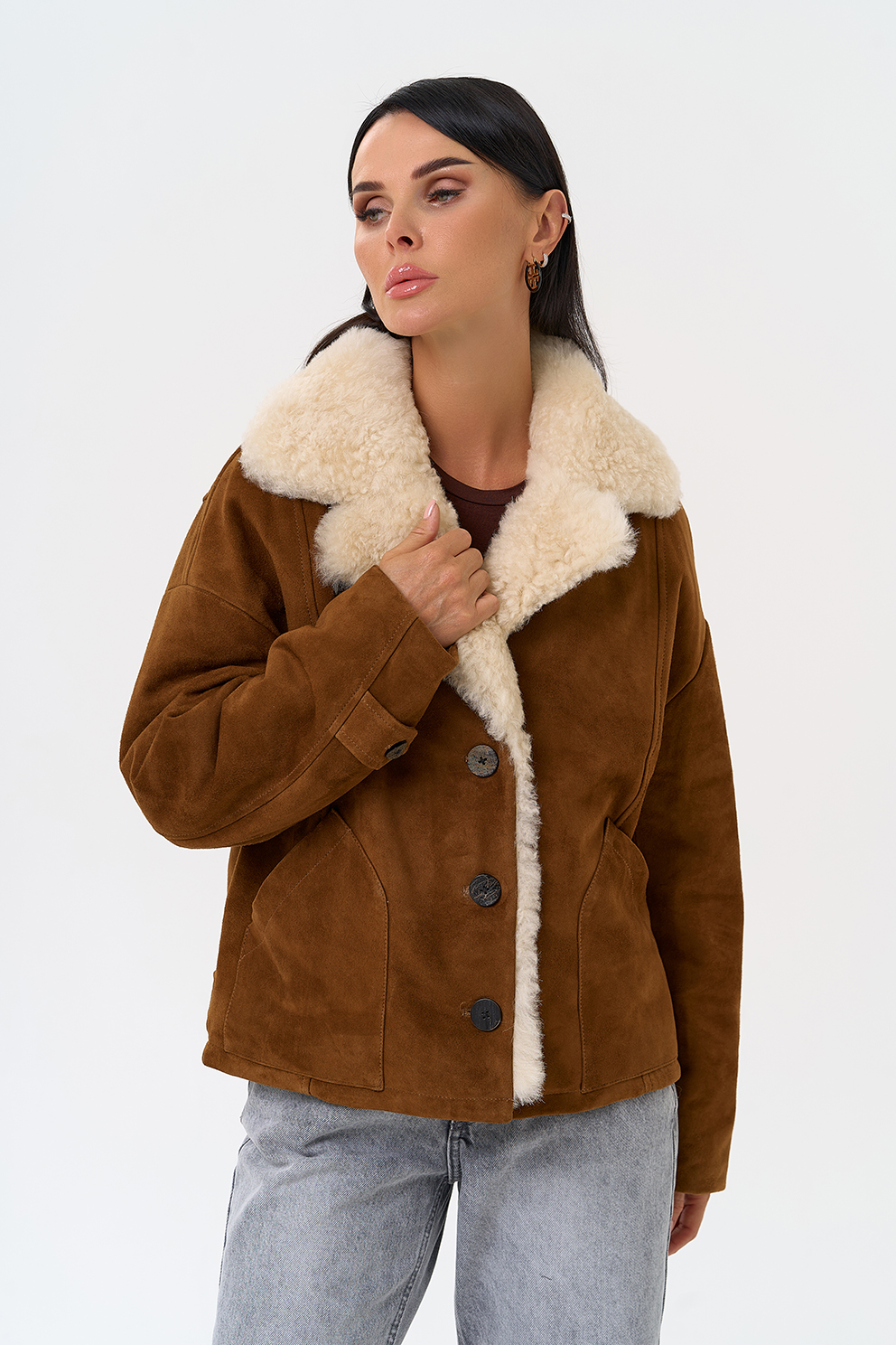 Тип ворота - английский воротник, отделка овчина