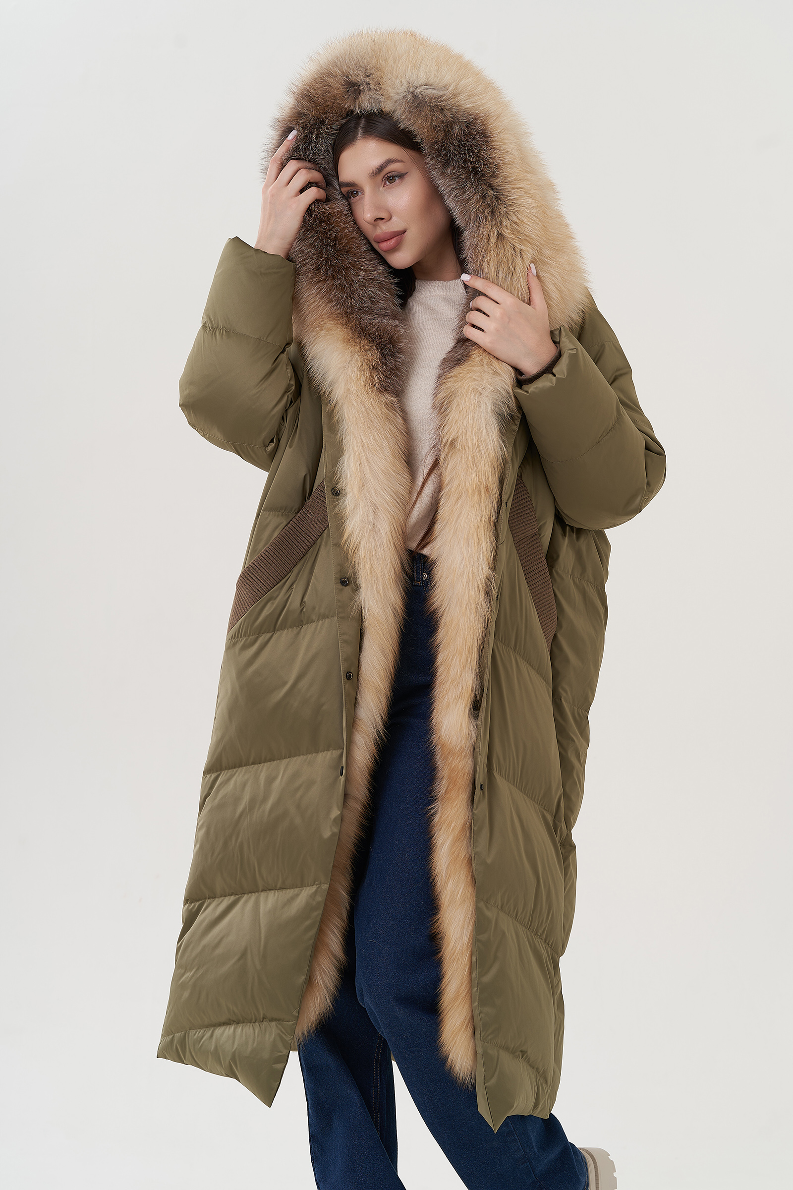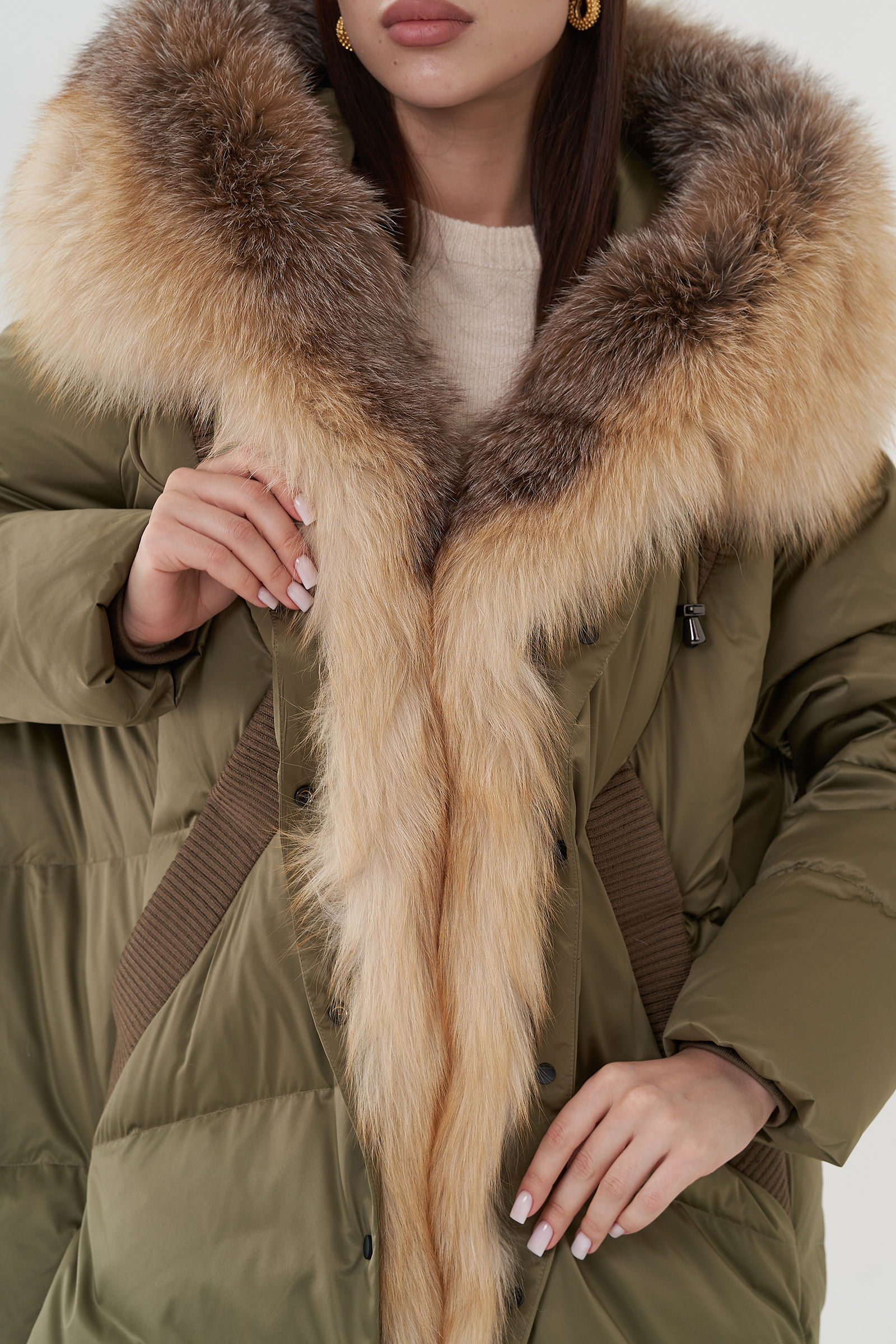 Крой воротника - капюшон, отделка лиса
