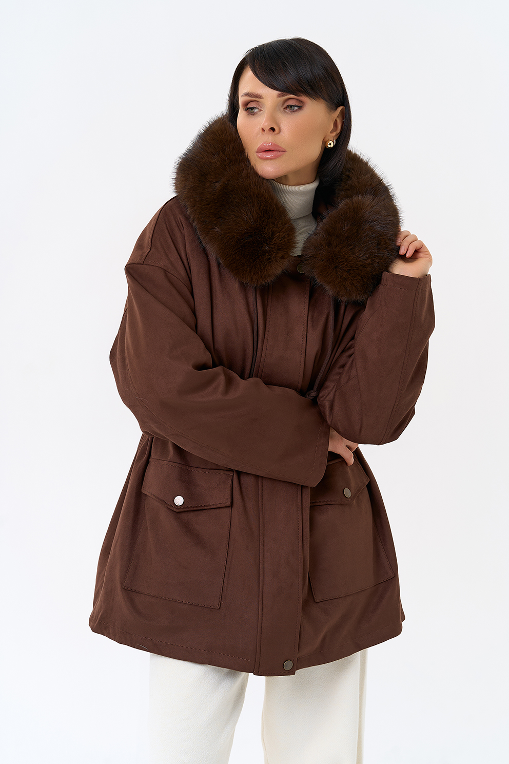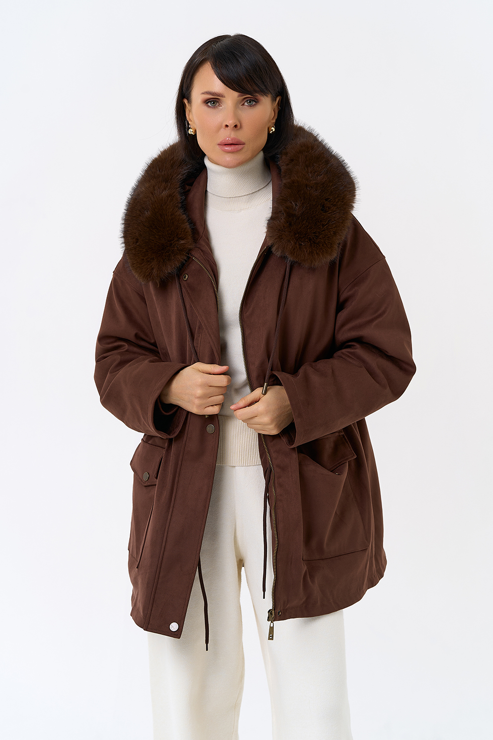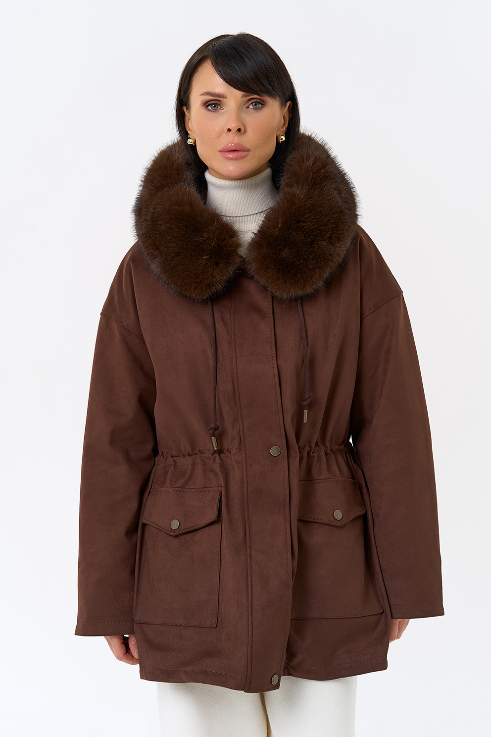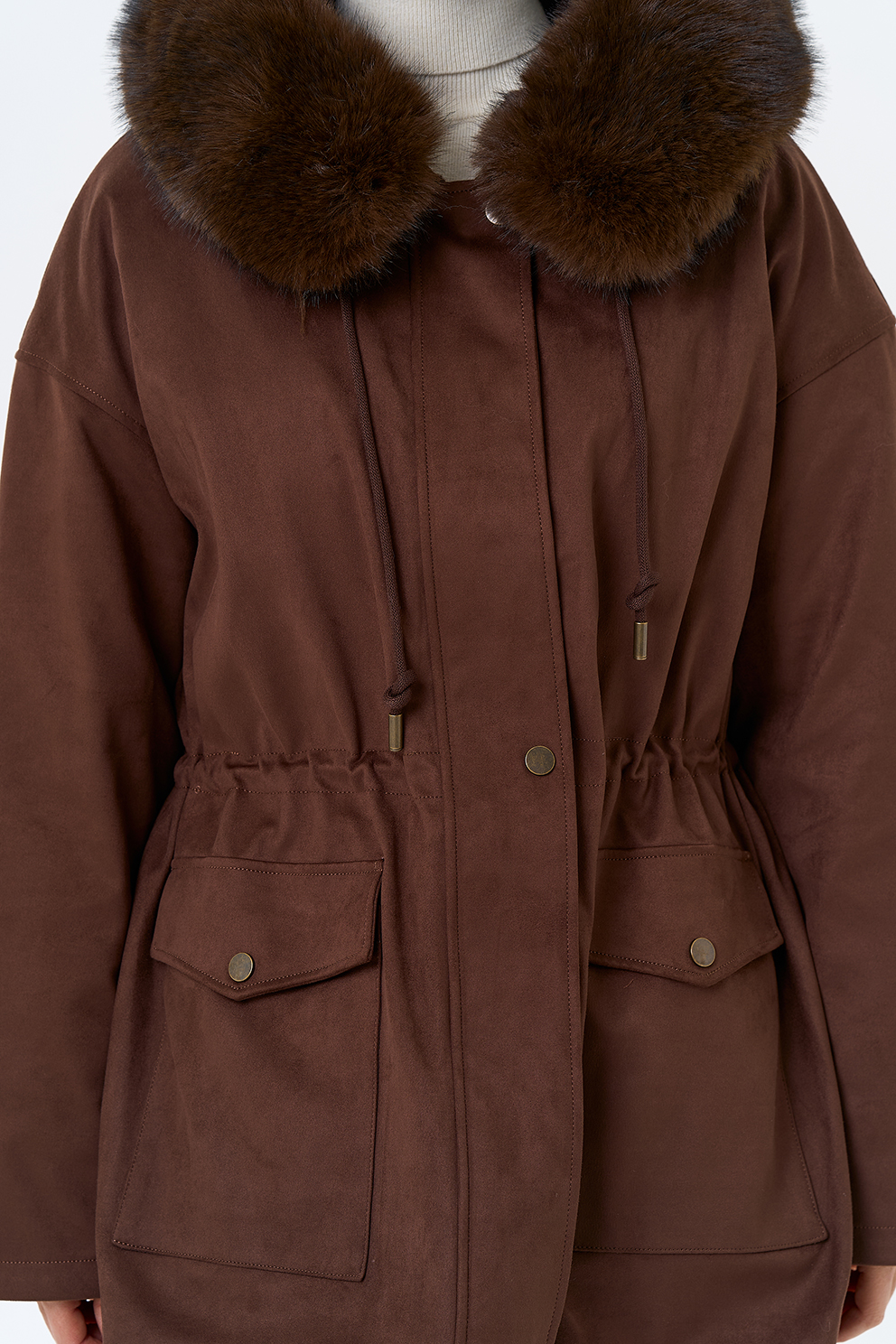 Отделка воротника - эко мех, цвет коричневый