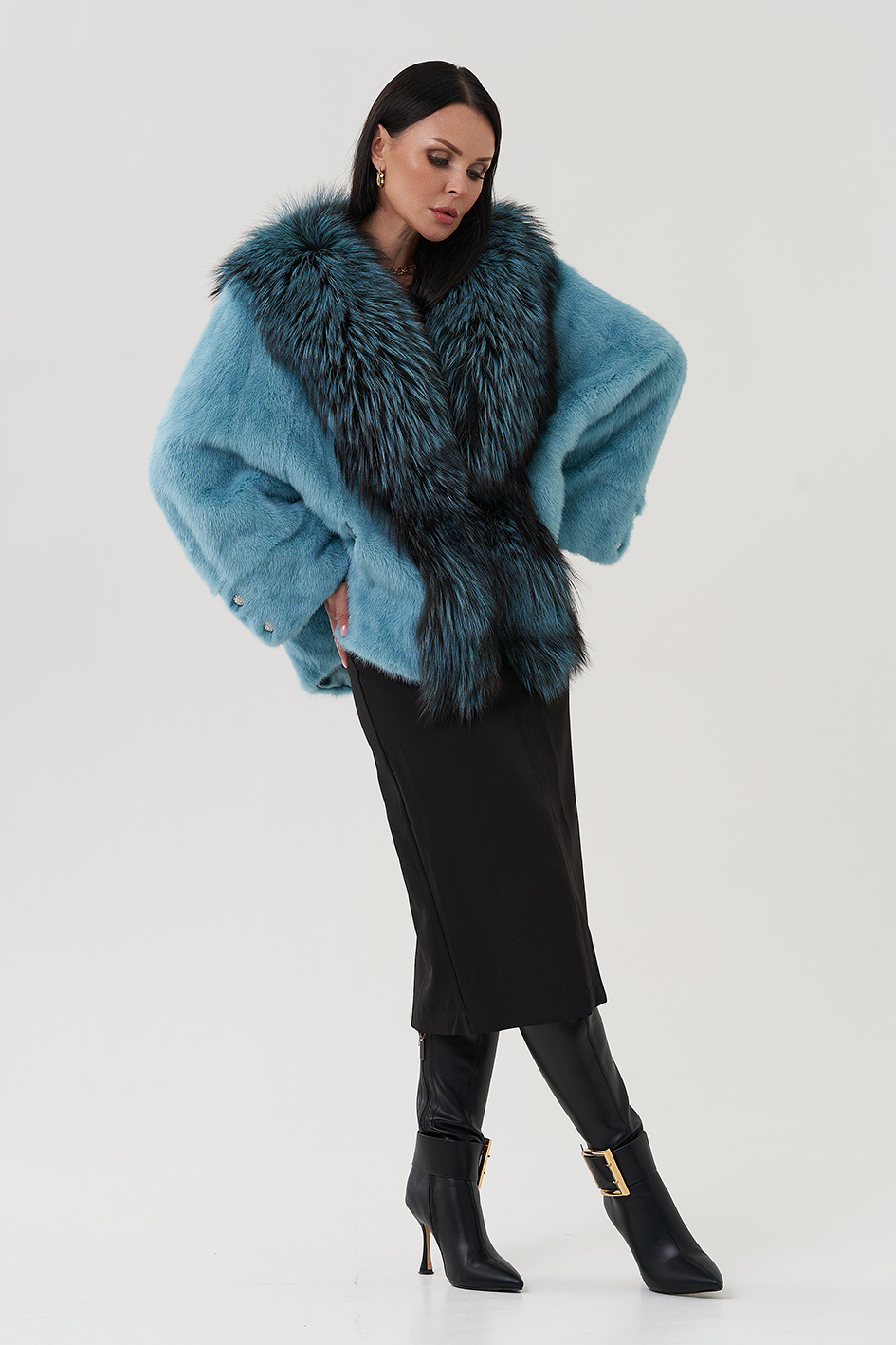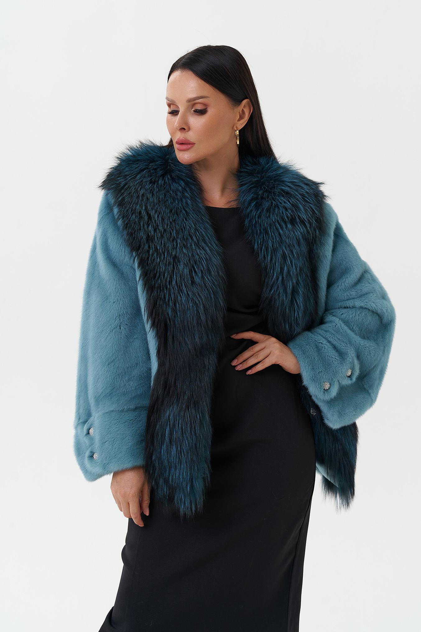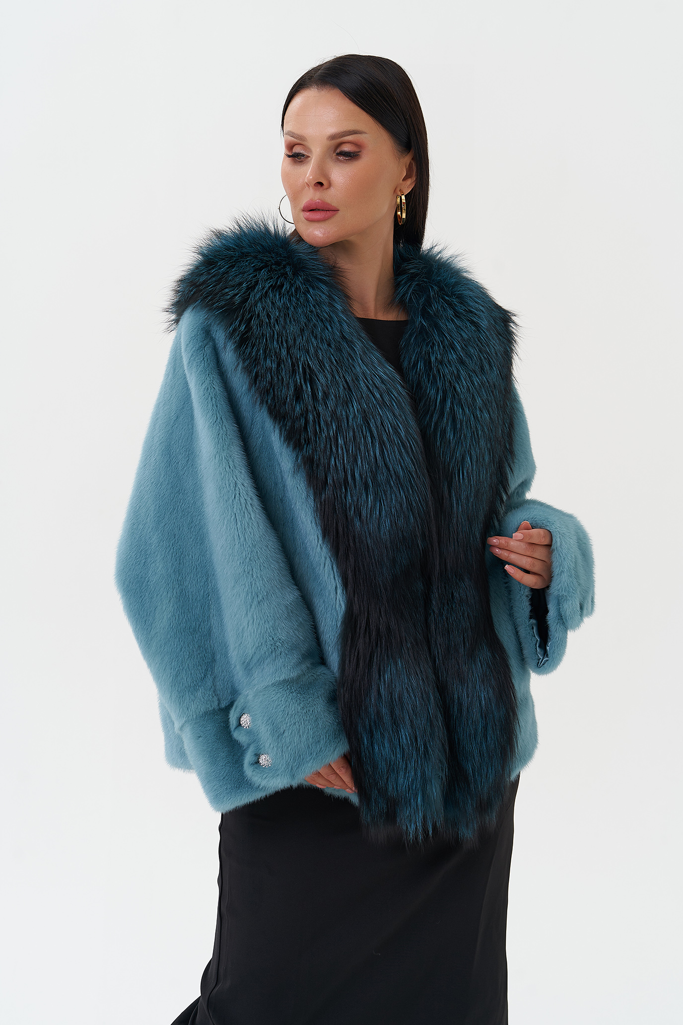 Тип ворота - V - образный воротник , отделка чернобурка