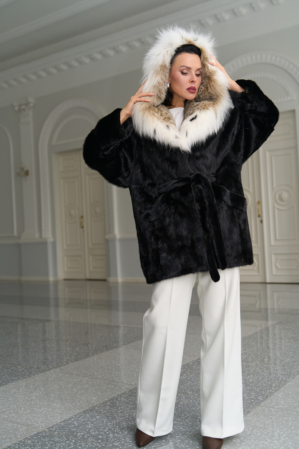 Для жителей Рязани у нас действует беспроцентная рассрочка и кредит на выбранный товар — Женская шуба из меха норки с капюшоном из меха рыси артикул razan31376. Если у вас остались вопросы напишите или позвоните нам, и мы на них ответим.
